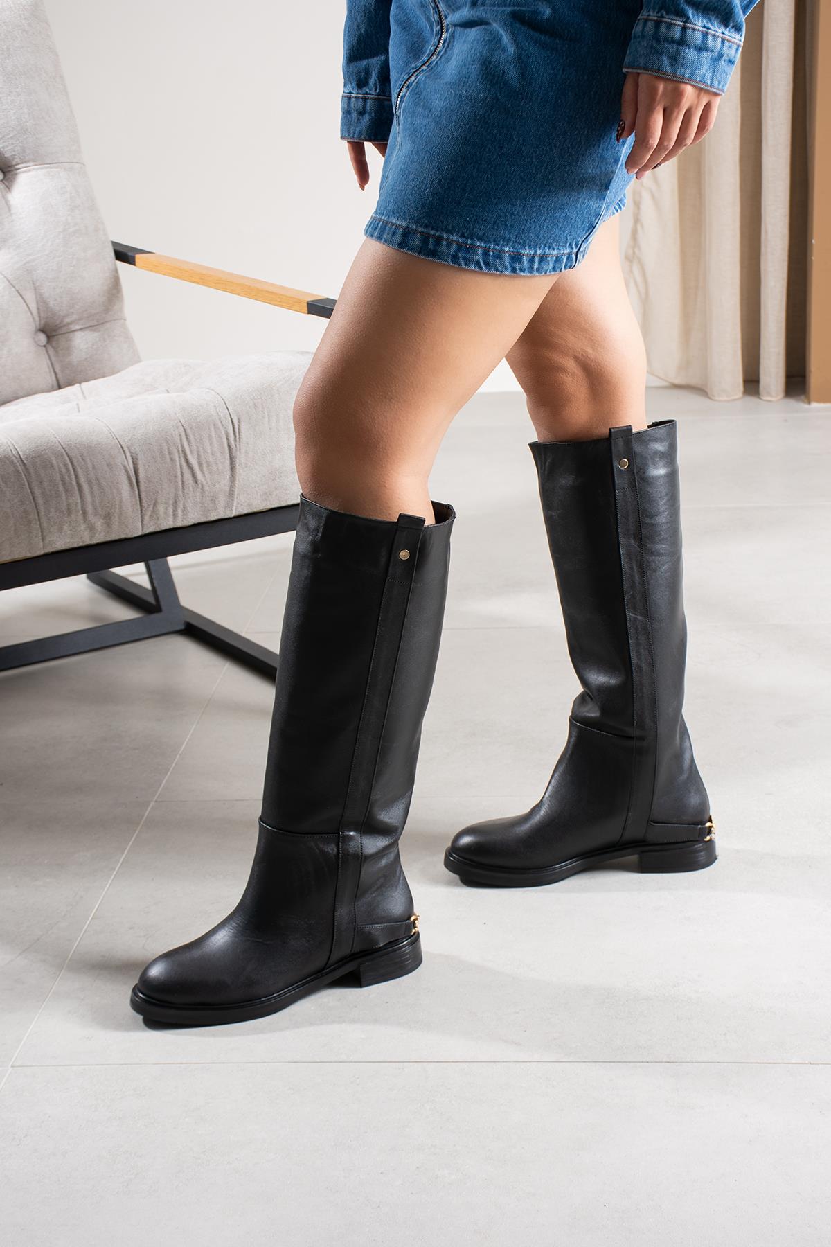 Floor Siyah Hakiki Süet Kalın Düz Taban Kadın Çizme (FS1143)